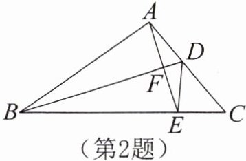 2. 如图,在$\triangle ABC$中,E是BC边上的一点,连结AE,BD垂直平分AE,垂足为F,交AC于点D,连结DE。