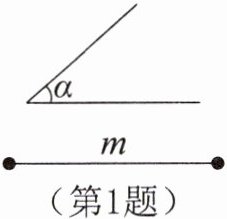 1. 如图,已知$\angle \alpha$,线段m,用尺规作图作出一个直角$\triangle ABC$,使得一个锐角等于$\angle \alpha$,斜边长为m,保留作图痕迹。