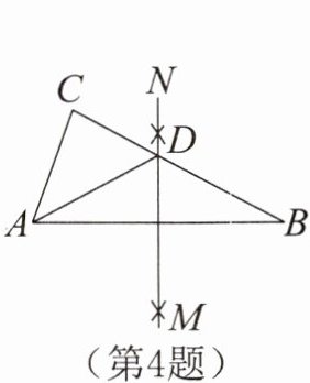 4. 如图,在$\triangle ABC$中,分别以A和B为圆心,大于$\frac{1}{2}AB$的长为半径画弧,两弧相交于点M,N,作直线MN交BC于点D,连结AD。若BC= 7,AC为整数,则AC的最大值是______。