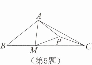 5. 如图所示,在$\triangle ABC$中,点$P在AC$的垂直平分线上,连结$PA$,$PC$,作$PA的垂直平分线交BC于点M$,若$AP= 6$,$AM= 5$,$MC= 10$,则$\triangle MPC$的周长是 。