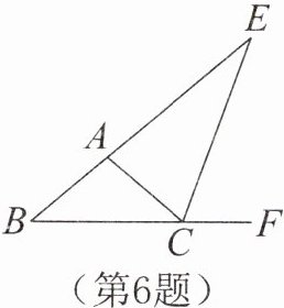 6. 如图,$CE是\triangle ABC的外角\angle ACF$的平分线,且$CE交BA的延长线于点E$。若$\angle B= 40^\circ$,$\angle E= 30^\circ$,则$\angle BAC$的度数为 。