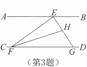 3. 如图,$\triangle EFG的三个顶点E$,$G和F分别在平行线AB$,$CD$上,$FH平分\angle EFG$,交线段$EG于点H$,若$\angle AEF= 36^\circ$,$\angle BEG= 57^\circ$,则$\angle EHF$的大小为 。