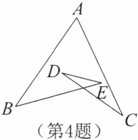 4. 如图,已知$\angle A= 60^\circ$,$\angle B= 40^\circ$,$\angle C= 30^\circ$,则$\angle D+\angle E= $ 。