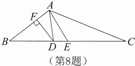 8. 如图,在$\triangle ABC$中,$AD平分\angle BAC$,$DF \perp AB$,$E是BC$的中点,连结$AE$,若$DF= 2$,$AC= 7$,$S_{\triangle AEC}= 6$,求$AB$的长。