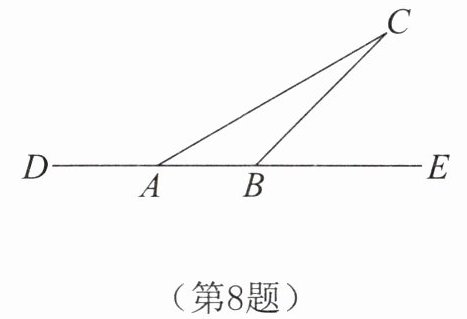 8.如图所示,△ABC的顶点A,B在直线DE上,用尺规作图法作△ABC关于直线DE的对称图形△ABC'。
