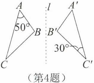 4.如图,△ABC与△A'B'C'关于直线l对称,∠A= 50°,∠C'= 30°,则∠B= ______°。