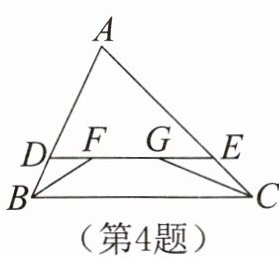4.如图,在△ABC中,ED//BC,∠ABC和∠ACB的平分线分别交ED于点F,G,若FG= 2,ED= 6,则DB+EC的值为 。
