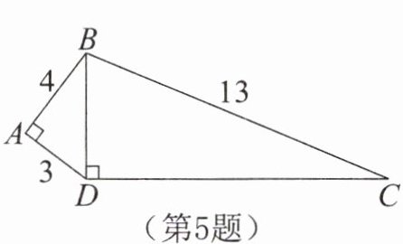 5.如图,在四边形ABCD中,AD⊥AB,BD⊥CD,AD= 3,AB= 4,BC= 13,则四边形ABCD的面积为______。