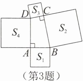 3. 如图所示,在四边形ABCD中,∠DAB= ∠BCD= 90°,分别以四边形的四条边为边向外作四个正方形,它们的面积分别是$S_1,S_2,S_3,S_4$。若$S_1+S_4= 100$,$S_3= 36$,则$S_2$的值是______。
