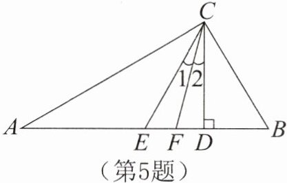 5. 如图,在Rt△ABC中,CD是斜边AB上的高,CE是AB上的中线,CF是∠BCA的平分线。求证:∠1= ∠2。