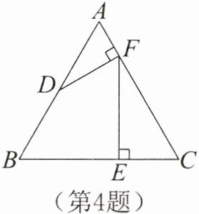 4. 如图,在等边△ABC中,BC= 2,D是AB的中点,过点D作DF⊥AC于点F,过点F作EF⊥BC于点E,则BE的长是______。