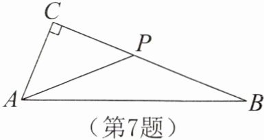 7. 如图,在Rt△ABC中,∠C= 90°。在边BC上有一点P,连结AP,且PA= PB,若AC= 2,CB= 5,求PA的长。