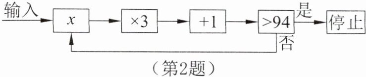 2. 运行程序如图所示,规定:从“输入一个值x”到“结果是否>94”为一次程序操作,如果程序操作进行了三次才停止,那么x的取值范围是______。
