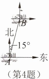 4. 如图所示,已知一艘船在点A处遇险后向相距80海里位于点B处的救生船报警,请用方向和距离描述救生船B相对于遇险船A的位置:______。
