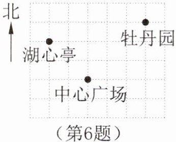 6. 七(2)班组织同学到人民公园春游,小明、小华对着景区示意图(如图)如下描述牡丹园的位置(图中小正方形的边长代表100米长)。小明:牡丹园的坐标是(300,300)。小华:牡丹园在中心广场东北方向约520米处。若他们所描述的位置都是正确的,则湖心亭所在位置的坐标是______。