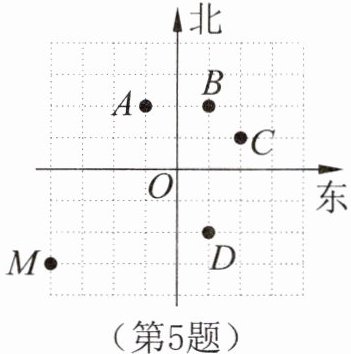 5. 如图,小明从点O出发,先向西走4m,再向南走3m到达点M,用方向和距离描述点B相对于点M的位置:______。