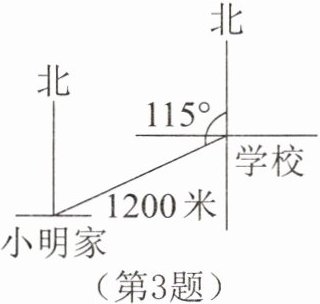 3. 如图,学校相对于小明家的位置下列描述最准确的是( )