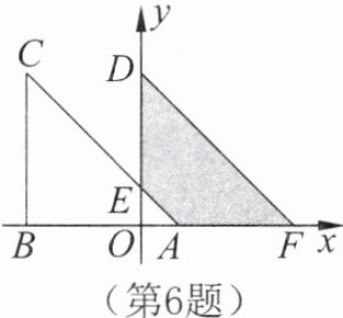 (2)如图所示,若顶点C(x,y)位于第二象限,且CB//y轴,AC与y轴交于点E(0,1),当△ABC沿x正半轴方向平移,得到△DOF,且△DOF与原△ABC重叠部分为△AOE,求阴影部分的面积。