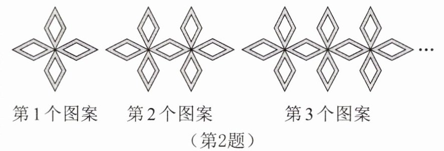 2.如图所示为一组有规律的图案,第1个图案是由4个◇组成的,第2个图案是由7个◇组成的,第3个图案是由10个◇组成的,…,设第n个图案是由y个◇组成的。
