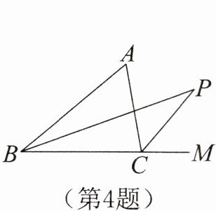 4. 如图,BP是△ABC中∠ABC的平分线,CP是∠ACB的外角的平分线,若∠ABP= 20°,∠ACP= 50°,则∠A+∠P= ______。