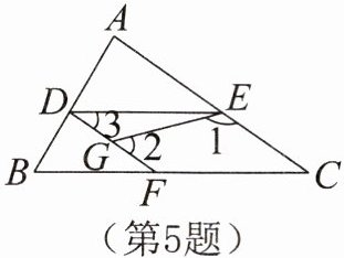 5. 如图,在△ABC的三边上有D,E,F三点,点G在线段DF上,∠1与∠2互补,∠3= ∠C。