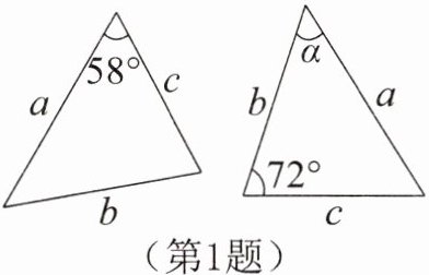 1. 如图是两个全等三角形,图中字母表示三角形的边长,则∠α的度数为( )