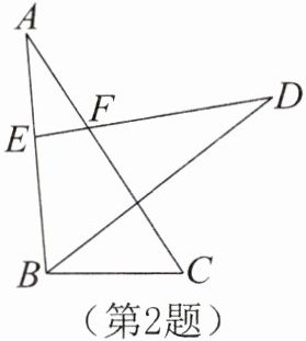 2. 如图所示,已知△ABC≌△DEB,点E在AB边上,DE与AC交于点F。