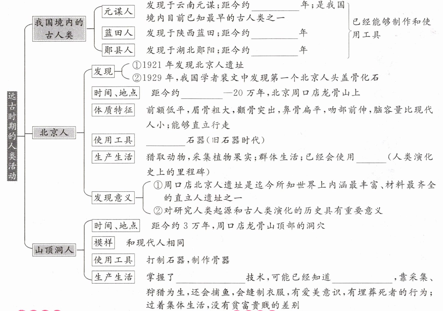 170 万;110 万—115 万;100 万—65 万;70 万;打制;火;磨光和钻孔;人工取火