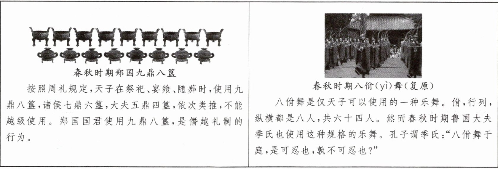 (1)现象:周王室衰微,诸侯、卿大夫僭越礼制(或礼乐制度开始瓦解;礼崩乐坏)。(2分)原因:①平王东迁后周王室直接管辖的地区仅在洛邑一带;②周王在名义上仍是天下“共主”,但缺乏经济、军事实力,权威明显削弱,渐渐失去对各地诸侯的控制;③诸侯国日益强大,各自为政,也不再定期朝觐天子和向周王室缴纳贡赋,导致周王室财政入不敷出,困难重重。(答出两点即可,4分)