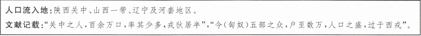 (2)历史事件:八王之乱。(1分)影响:①中原人口大量南迁,出现我国古代历史上第一次大规模的人口迁徙。②给北方社会造成巨大灾难,严重削弱西晋国力,成为西晋由盛而衰的转折点。(每点1分,共2分)