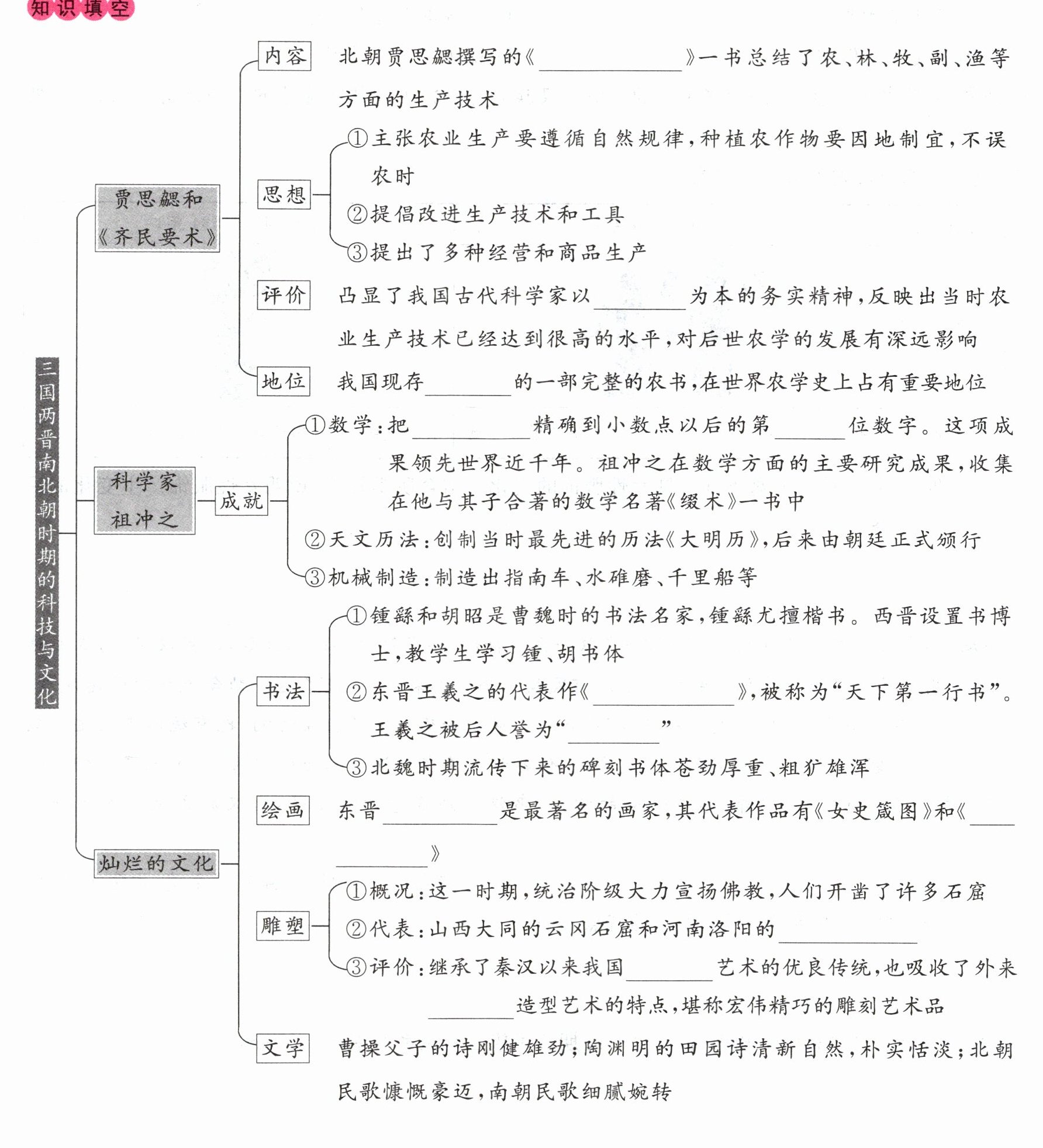 《齐民要术》;农;最早;圆周率;七;《兰亭集序》;书圣;顾恺之;《洛神赋图》;龙门石窟;雕塑;佛教