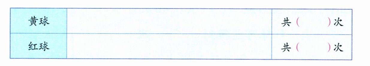 (3)两人合作,每次任意摸出1个球,摸后放回。在下页表格中记录每次摸出的是什么球。