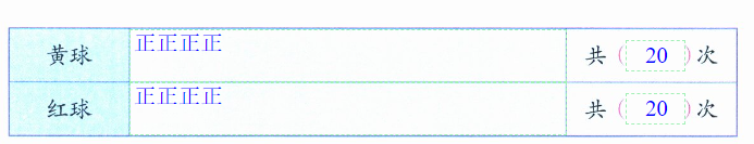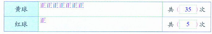 (2)两人一组,按上面的要求在袋中放好球。每次任意从袋中摸出1个球,摸后放回,一共摸40次。估计一下,黄球可能摸到( )次,红球可能摸到( )次。