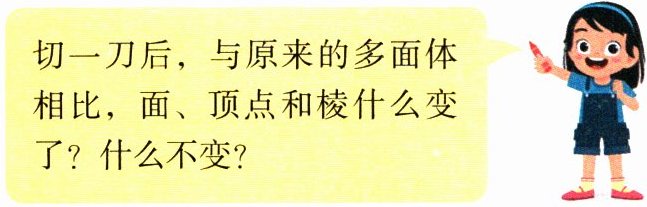 切一刀后,与原来的多面体相比,面、顶点和棱什么变了?什么不变?