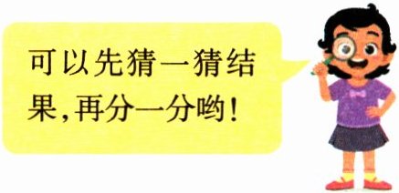 先把算式写下来,再拿出橡皮泥,动手分一分,并把分得的结果写在算式后面。