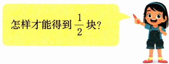 (3)如果每人分$\frac{1}{3}$块,4块橡皮泥可以分给几个小朋友?每人分$\frac{1}{4}$块呢?先列出算式,再拿出第41页中的圆片(代替橡皮泥)分一分。