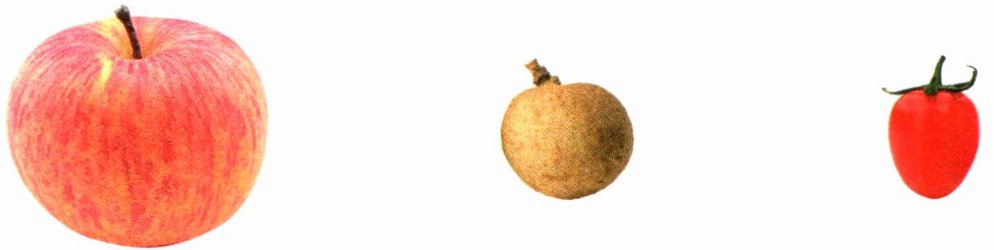 苹果、龙眼和小番茄,哪个体积最大?哪个体积最小?一个苹果的体积和几个小番茄的体积差不多呢?……