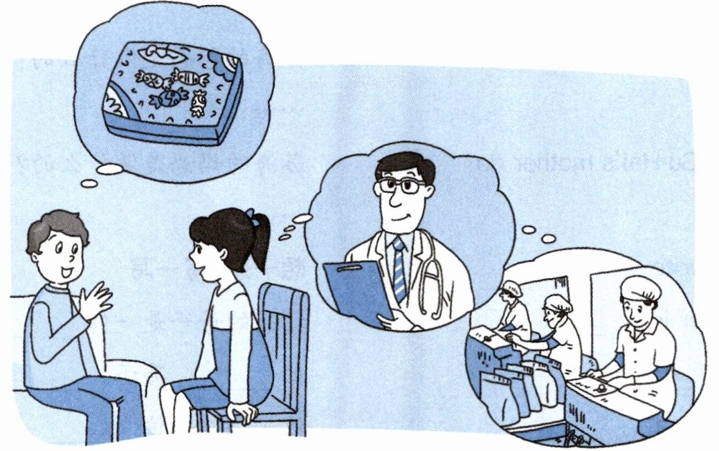 Su Hai: My mother is a factory worker. She makes sweets. 苏海:我妈妈是一位工厂工人。她制作糖果。