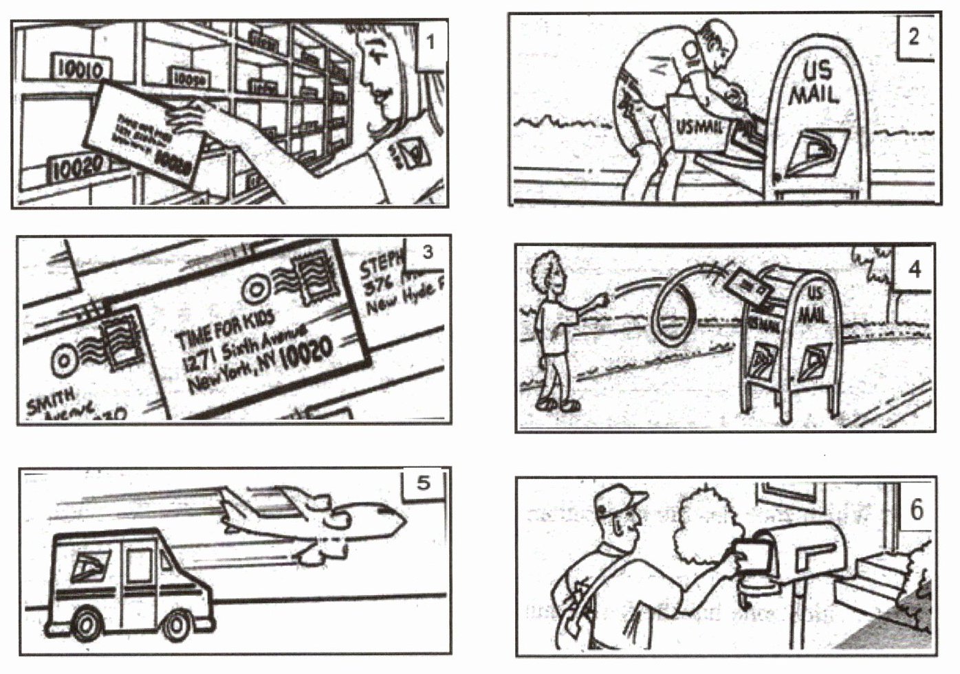 ( ) The mail carrier takes the letters from the mailbox. He brings them to the post office.