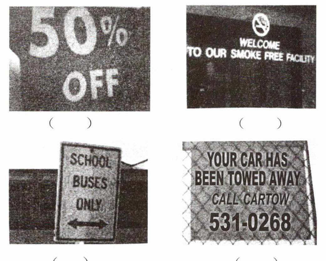 b. 观察下面的标志,选择其正确的含义,把序号填在图下面的括号里。