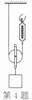 4. 如图所示,在“研究动滑轮特点”实验中,用竖直向上的拉力将物体匀速提升0.1 m,不计动滑轮重、绳重及摩擦,若弹簧测力计的读数为0.5 N,则物体自重和弹簧测力计移动的距离分别为 (