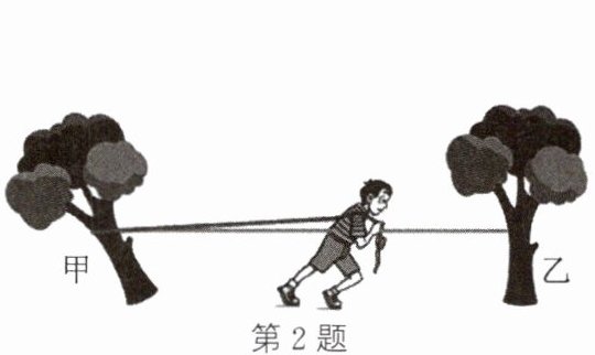 2. (2024·惠州惠城段考)如图所示,小欣同学只有一根绳子,他想把被风刮倒的甲树拉正,想起刚学习的滑轮知识,他把绳子的一端系在乙树上,然后绕过甲树用力拉绳子。在甲树被拉起的过程中,