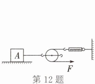 12. 如图所示,重为10 N的物体A在水平拉力F的作用下,沿水平方向以0.4 m/s的速度匀速运动了2 s,弹簧测力计的示数为4 N,物体A所受重力做的功为