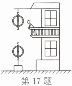 17. 如图所示,在建筑工地上,工人师傅利用一根绳子和两个滑轮运送建筑材料。请在图中画出最省力的滑轮组绕绳方式。