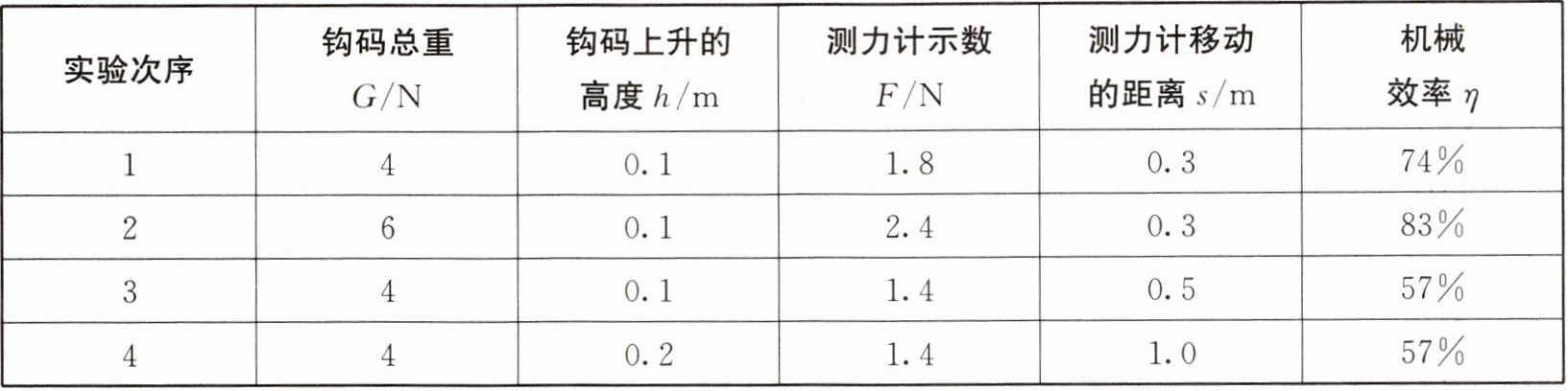 (4) 分析第3、4次实验数据可知,滑轮组的机械效率与物体被提升的高度