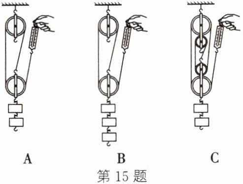 15. 小明在测量滑轮组机械效率的实验中,所用装置如图,实验中每个钩码重2N,数据如表所示: