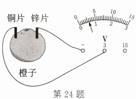 能转化为电能。用导线将电压表的两个接线柱分别接在铜片和锌片上,电压表指针发生了偏转,由此可知锌片是水果电池的负