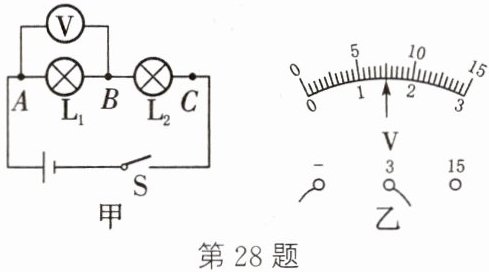 28. 某小组同学利用如图甲所示电路探究串联电路中的电压关系。
