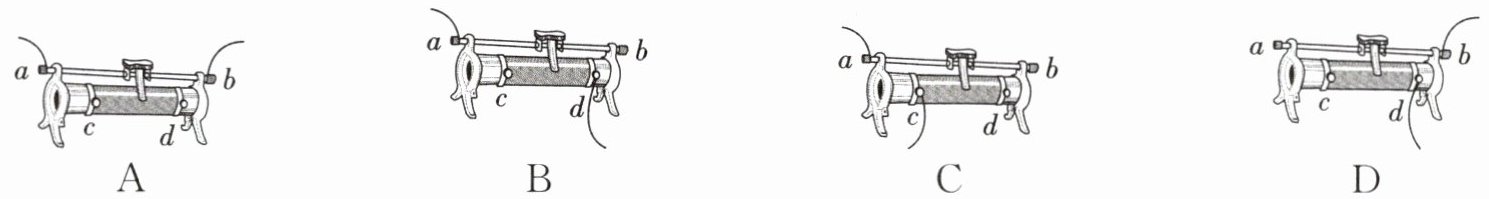 4. 当滑动变阻器的滑片向$b$端滑动时,下列四种接法中,其阻值变大的是 (