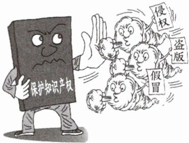 漫画中展示了保护知识产权,打击盗版、假冒、侵权等行为。